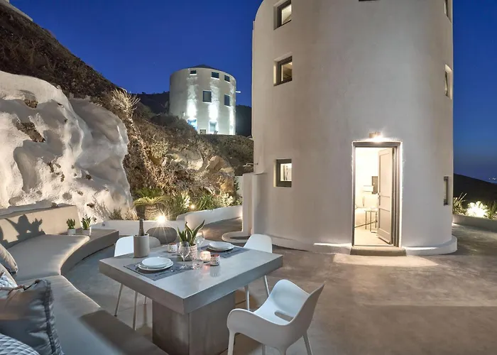 Situated 3.4 km from the Santozeum Museum, the 9-room Topos Exclusive Santorini Imerovigli villa invites guests to relax at a terrace. Providing a swimming pool, this property also offers bike riding for active guests.